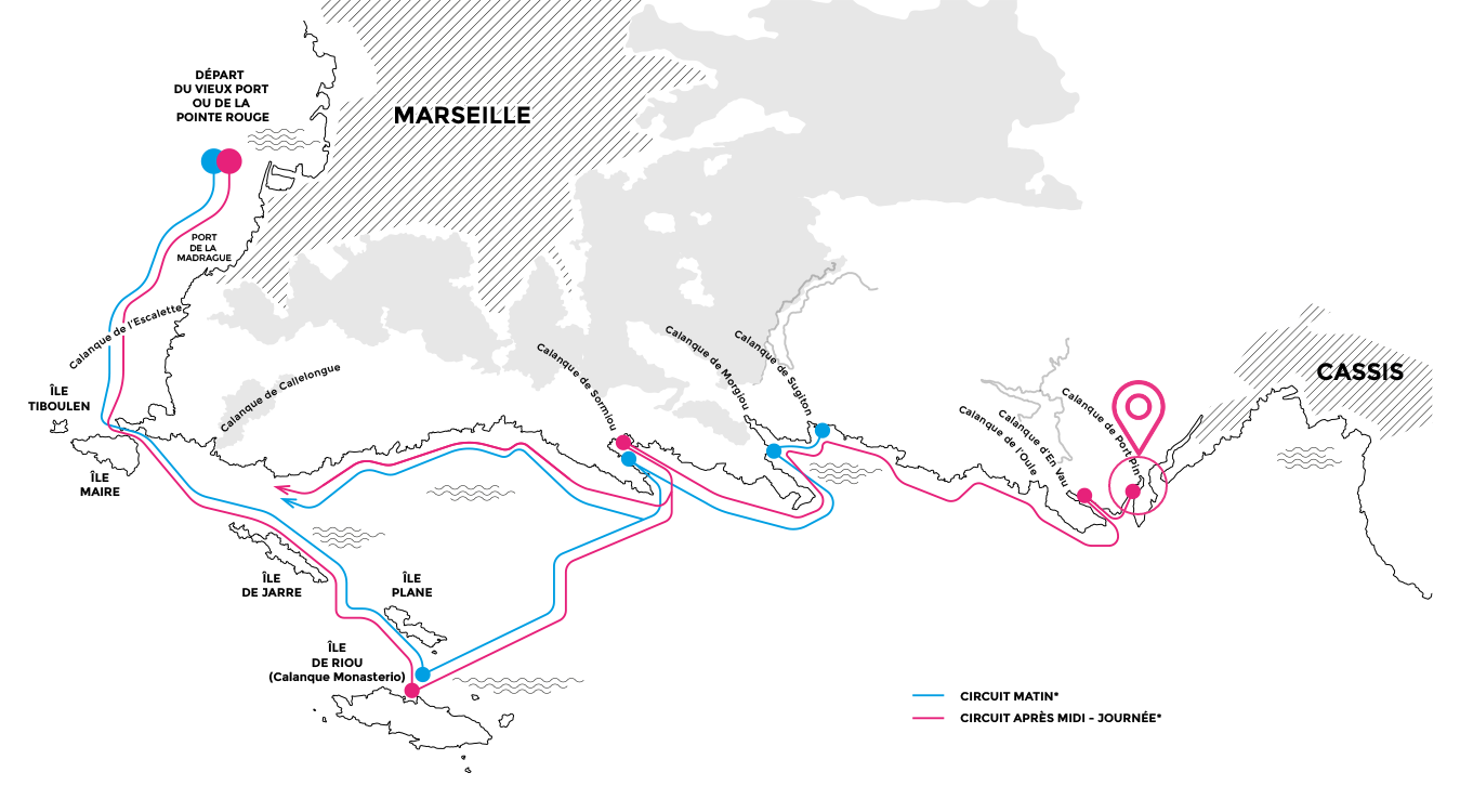 We enter the Port-Pin channel to allow you to visit it as closely as possible, but we do not reach the water's edge at the beach. To protect the many swimmers and the fragile ecosystem of this narrow Calanque, navigation is limited. Our skippers position the boat to give you a perfect panoramic view of the entire site before heading to a nearby authorized mooring area. Strong swimmers will be able to reach the beach.