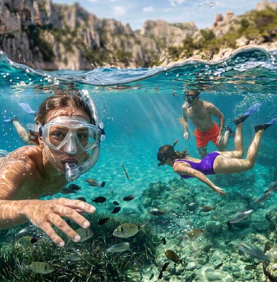 You don't need to know how to swim to enjoy the boat tour, but it is essential for swimming in the open sea. Safety first: our boats are equipped with CE-approved life jackets for adults and children. On board: you can stay on deck and enjoy the scenery in complete safety. Buoyancy aids: for those who are unsure in the water, we always provide “fries” or flotation devices. Simply let the skipper know your level when you board.